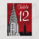 Customizable Invitations and accessories with a silhouette of the New York City skyline featuring the ESB and an etched Chrysler Building in the foreground. They also feature a red starry night background with white stars.
