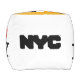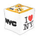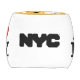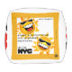 Pouf Cube white with sunshine figures on top surrounded by gold square border with "HEY BABY!!! SUNNY & RAYRAY BEAM THE SUNSHINE BROTHERS IN THE NYC" with Y-NOT-ME and Y-NOT-ME logo. This is an expression of good clean fun. It`s a shout-out to The Big Apple, New York City, NY.