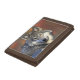 Nylon tri-fold wallet shown with a photo print of a wild wolf on the flap.