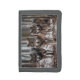 Nylon tri-fold wallet shown with a photo print of wild wolves on the flap.