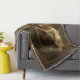 A quality printed throw has its advantages. This is a much finer weave throw than its loopier cousins, and though lighter, it is worth the investment for custom room accessorizing. The back is much prettier than the typical brown, and the fringe on the long sides very vivid, the selvage nicely done. Before photographing, I washed the throw in cold water, delicate, with a thicker woven throw the same size. On tumble dry low, this throw was dry in half the time as the other. This is a very practical quality if you use throws for furniture covers or to wrap up in frequently. The sleekness of the fabric makes it a great layer for accenting or protecting without the feeling of sitting on too much stuff. Perfect for napping or when you feel a light chill coming on. The color printing is beautiful and on this fabric, matched the design and color of my Photoshop image. This is an advantage for blending room fabrics and colors. The fringe on the short sides prints the colors from the design image and therefore varies from the side fringe. I streaked a white fractal line through the plaid pattern to give the illusion of weaving. This printed as crisp as an illusory thread, and put some white in the short side fringe, showing another advantage of print vs loomed- for artistic purposes, line lines, detail, and color integrity can be planned and preserved. My loomed throws have color limitations and more of a needlepoint texture. Print throws reproduce an exact image. The throw felt a little stiff straight out of the package, but this went away in the first delicate wash. Of course I searched the wash water for ink or bleeding and there was none.