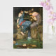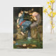 John William Waterhouse Nymphs Finding the Head of Orpheus greeting card. English artist John William Waterhouse devoted multiple paintings to the mythological character Orpheus. Nymphs Finding The Head of Orpheus is one of his most dramatic. The painting depicts two curious nymphs sitting by a small waterfall watching the head of Orpheus as it floats in a pool of water among the lily pads. A beautiful gift for fans of John William Waterhouse, Mythological Paintings, Orpheus, and Fantasy art.