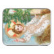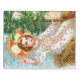 Detail of a charming, vintage image of the Christ Child personally delivering a candle-lit Christmas tree to a home that has prepared for His coming. Here, Jesus, seated upon His straw-filled manger, wears a white robe decorated with a gold cross and stars. At the center of the cross on His chest is a quatrefoil containing the IHS, one of several Greek monograms for His name. He raises His right hand in blessing and holds the Christmas tree upright in His left. Perfect for teaching a child about Advent! + Image Credit: Detail of “Gloria in excelsis Deo,” devotional print in gilt chromolithography, late 19th-early 20th century, original publisher (perhaps German) unknown, from the designer’s private collection of religious ephemera.