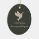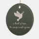 The thrill of hope, the weary world rejoices, lyrics from O Holy Night in a peaceful green ornament with dove.