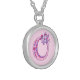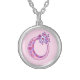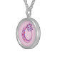 Pretty letter O monogram pendant. Whimsical letter drawing of the capital initial letter O, ideal for gifting girls with a name that begins with O. Background color can be changed if required, currently light pink. © Original drawing and design by Sarah Trett www.sarahtrett.com for www.mylittleeden.com