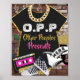 O.P.P Pink, Black & Gold| Hip Hop Baby Gifts Table Sign/Poster. features black baby bodysuit and fly gold chain on a graffiti brick background.