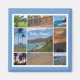 Colorful photo collage of a wonderful trip to Oahu, Hawaii. Sandy beaches, swaying palm trees, sunset over the horizon, pineapple trees and an aqua blue ocean.