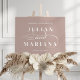 Simple and elegant wedding welcome sign features your names in white lettering, joined by "and" in decorative, embellished white calligraphy script lettering on a neutral dusty rose taupe background. Personalize with three lines of custom text.