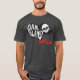 My 11 yo wore adult XL (5’7” 165#). The 8yo is small framed. She wore adult small and tied it in the back. Grandma wore adult large with long sleeve shirt underneath. Tall girl adult medium. Dark haired male adult large. Good quality dark Heather gray, Gildan brand shirt. -it was next up from basic choice and cost about $20 per shirt. Not too thick or thin. Washed and dried well, no major shrinkage. Not see-through. Can wear a bra under it fine. Screen print is just as shown and well done, front and back.