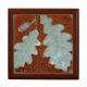6 inch Oak leaf tile in the Craftsman style tile wooden keepsake box , features Dark chocolate and patina green leaves.