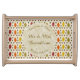 This awesome serving tray features a pattern of corns and oak leaves. The oak leaves are colored from green to yellow, orange and red to represent the changes in fall or Autumn. The design is ideal for a Fall or Autumn wedding.