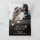 Oak Ridge Rustic Dark Brown Barn Wood, Sparkling Mason Jars, and Glowing String Lights Design with Twinkling strands of dangling lights and jars on a deep rich wood texture with white accents. With Modern Typography Script Fonts. A rustic elegant country farmhouse style design - Personalized Wedding Custom Photo Thank You Card!