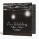 Oak Ridge Rustic Dark Brown Barn Wood, Sparkling Mason Jars, and Glowing String Lights Design with Twinkling strands of dangling lights and jars on a deep rich wood texture with white accents. With Modern Typography Script Fonts. A rustic elegant country farmhouse style design - Personalized Wedding Photos Newlyweds photo album scrapbook!
