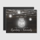 Oak Ridge Rustic Dark Brown Barn Wood, Sparkling Mason Jars, and Glowing String Lights Design with Twinkling strands of dangling lights and jars on a deep rich wood texture with white accents. With Modern Typography Script Fonts. A rustic elegant country farmhouse style design - Personalized Wedding Save the Date Magnetic Cards!