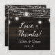 Oak Ridge Rustic Dark Brown Barn Wood, Sparkling Mason Jars, and Glowing String Lights Design with Twinkling strands of dangling lights and jars on a deep rich wood texture with white accents. With Modern Typography Script Fonts. A rustic elegant country farmhouse style design - Personalized Wedding Love and Thanks Square Thank You Card!