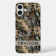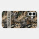Customize this oak tree camouflage iPhone 16 plus case with your name in a trendy modern CAP font in gray on opaque cream. It's masculine and perfect for your favorite military, hunting, country or outdoorsman!
