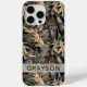 Customize this oak tree camouflage iPhone 15 pro max case with your name in a trendy modern CAP font in gray on opaque cream. It's masculine and perfect for your favorite military, hunting, country or outdoorsman!
