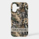 Customize this oak tree camouflage iPhone 17 case with your name in a trendy modern CAP font in gray on opaque cream. It's masculine and perfect for your favorite military, hunting, country or outdoorsman!