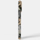 Customize this oak tree camouflage iPhone 16 pro max case with your name in a trendy modern CAP font in gray on opaque cream. It's masculine and perfect for your favorite military, hunting, country or outdoorsman!