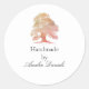 A personalized Handmade by sticker featuring a wise old oak tree detail in beautiful fall colors. With its wisdom and strength this is the perfect design for a growing business of distinction.