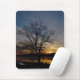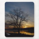 A large Oak tree stands silhouetted in the foreground during a sunrise near a lake. Displayed on a quality Mousepad.