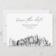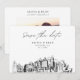 Modern Oakland black and white save the date invitation. The front showcases a stunning sketch, setting the perfect tone for your wedding day. Add your own photo to the back and customize the text to make it your own. Enter the Zazzle design tool for additional design customizations.