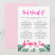 This bachelorette game features watercolor flamingos and tropical palm leaves. Edit *most* of the wording. This bachelorette party game is perfect for your tropical, flamingo, and summer inspired bachelorette event.