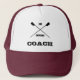 Humorous "awe-inspiring" slogan for a rower or sculler. Personalize your hat with a name or other text. The example shown would make a great 'thank you' gift for a coach. The caption is in capital letters, with crossed blades, in black.