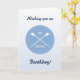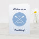 Humorous "awe-inspiring" slogan for a special birthday card for a rower or sculler. The text is in capital letters, with crossed blades in white on a blue circular badge. Inside, the greeting is customizable, or you can use the provided "Have a gr-eight day and an oar-full lot of fun!"