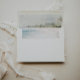 OASIS, wedding invitation envelope. Features, coastal beach watercolor scene lining and return address template on back flap.