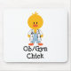 A yellow chick wearing blue scrubs with a stethoscope around her neck and a lab coat with a pen in pocket on OB/GYN Chick t shirts, stationery and more medical theme merchandise and apparel for a female obstetrician and gynecologist. These items make a cute and funny obstetrics and gynecology gifts for a medical student graduate, resident, intern, physician or pre med student. Studios, LLC.