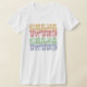 My overall review is that the T-shirt is nice, it fits true to size however the font is significantly smaller than advertised and you can't read it. The printing is unreadable and there is a strain to read it. It does not look like the advertised product. Maybe the shirt color is darker or a larger more visible font should have been used. Photos with and without flash and font is barely legible.