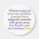 Obama a peacenik socialist? Just a Republican myth. He's ramped up wars and failed to regulate Wall Street, and Obamacare didn't go far enough to help all Americans. So it's ironic that the GOP, the party of Christian conservative values, fails to realize what a progressive liberal Jesus Christ was: fed the hungry, turned the other cheek, fought the money-changers. And OMG, He was a "foreigner," too!
