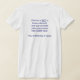 My overall review is that the T-shirt is nice, it fits true to size however the font is significantly smaller than advertised and you can't read it. The printing is unreadable and there is a strain to read it. It does not look like the advertised product. Maybe the shirt color is darker or a larger more visible font should have been used. Photos with and without flash and font is barely legible.