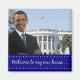 "Welcome to my new house ..." Barack Obama stands in front of the White House with a patriotic greeting of welcome on Inauguration Day.
