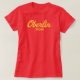 Show pride for your Obie with this Oberlin mom t-shirt, with yellow script on a red shirt.