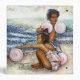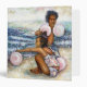 Original Painting of two girls playing with pink balloons on Coney Island Beach by New York City, Fine Art Artist, Gaye Elise Beda