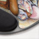 The plastic backing is nice and sturdy. The grippy pads underneath keep the mouse pad where I put it on my table. The pad the mouse sits on is cut well to fit the backing. The wrist pad is perfectly soft, supportive, and thick. I'm left-handed, and this mouse pad works just as well for me as it does for my right-handed friends. I'm the designer of HippieClecticHope products. I'm blown away by how well my intricate fractals turn out on the tangible items in the Zazzle Marketplace. This particular mouse pad ***appears*** like a 3D object... A mathematically-engineered rainbow black opal, inlaid under transparent fabric...