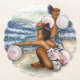 Original Painting of two girls playing with pink balloons on Coney Island Beach by New York City, Fine Art Artist, Gaye Elise Beda