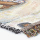 A quality printed throw has its advantages. This is a much finer weave throw than its loopier cousins, and though lighter, it is worth the investment for custom room accessorizing. The back is much prettier than the typical brown, and the fringe on the long sides very vivid, the selvage nicely done. Before photographing, I washed the throw in cold water, delicate, with a thicker woven throw the same size. On tumble dry low, this throw was dry in half the time as the other. This is a very practical quality if you use throws for furniture covers or to wrap up in frequently. The sleekness of the fabric makes it a great layer for accenting or protecting without the feeling of sitting on too much stuff. Perfect for napping or when you feel a light chill coming on. The color printing is beautiful and on this fabric, matched the design and color of my Photoshop image. This is an advantage for blending room fabrics and colors. The fringe on the short sides prints the colors from the design image and therefore varies from the side fringe. I streaked a white fractal line through the plaid pattern to give the illusion of weaving. This printed as crisp as an illusory thread, and put some white in the short side fringe, showing another advantage of print vs loomed- for artistic purposes, line lines, detail, and color integrity can be planned and preserved. My loomed throws have color limitations and more of a needlepoint texture. Print throws reproduce an exact image. The throw felt a little stiff straight out of the package, but this went away in the first delicate wash. Of course I searched the wash water for ink or bleeding and there was none.