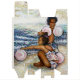 Original Painting of two girls playing with pink balloons on Coney Island Beach by New York City, Fine Art Artist, Gaye Elise Beda