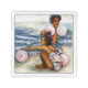 Original Painting of two girls playing with pink balloons on Coney Island Beach by New York City, Fine Art Artist, Gaye Elise Beda
