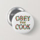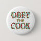 Obey the Cook funny kitchen food saying decorated with colorful holiday Christmas lights in red, green, yellow and blue. You must obey the cook if you want to eat your dinner. By MomsRetro.