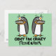 Obey the crazy Penguins! - Two crazy cartoon penguins with a funny one liner! Penguins with a silly saying / quote in grey, white, orange, and black colors with a cyan, turquoise green background. Fully customizable.