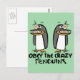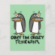 Obey the crazy Penguins! - Two crazy cartoon funny penguins with a silly saying / quote with a green background.