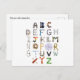 Back to school or teacher themed alphabet formed with phonetic everyday house hold objects. Fun & unique postcard to send to a child who is learning to read and learning their alphabet. customize the back with your own message or just delete option.