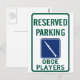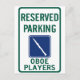Reserved parking sign for oboists. Available spelled the REAL way (hautbois) or the common way (oboe).