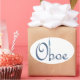Oboe Script. The background color is customizable. Roses, pale greens, and grays all look well.