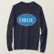 Patterned oboe text in a blue decorative oval is a unique gift design for string musicians, school music teachers and students in orchestra and string ensembles.