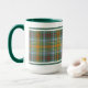 Coffee mug with the O'Brien clan tartan, a classic plaid pattern in green and orange, with bright yellow, light blue, and red accents. Five styles available in two sizes.